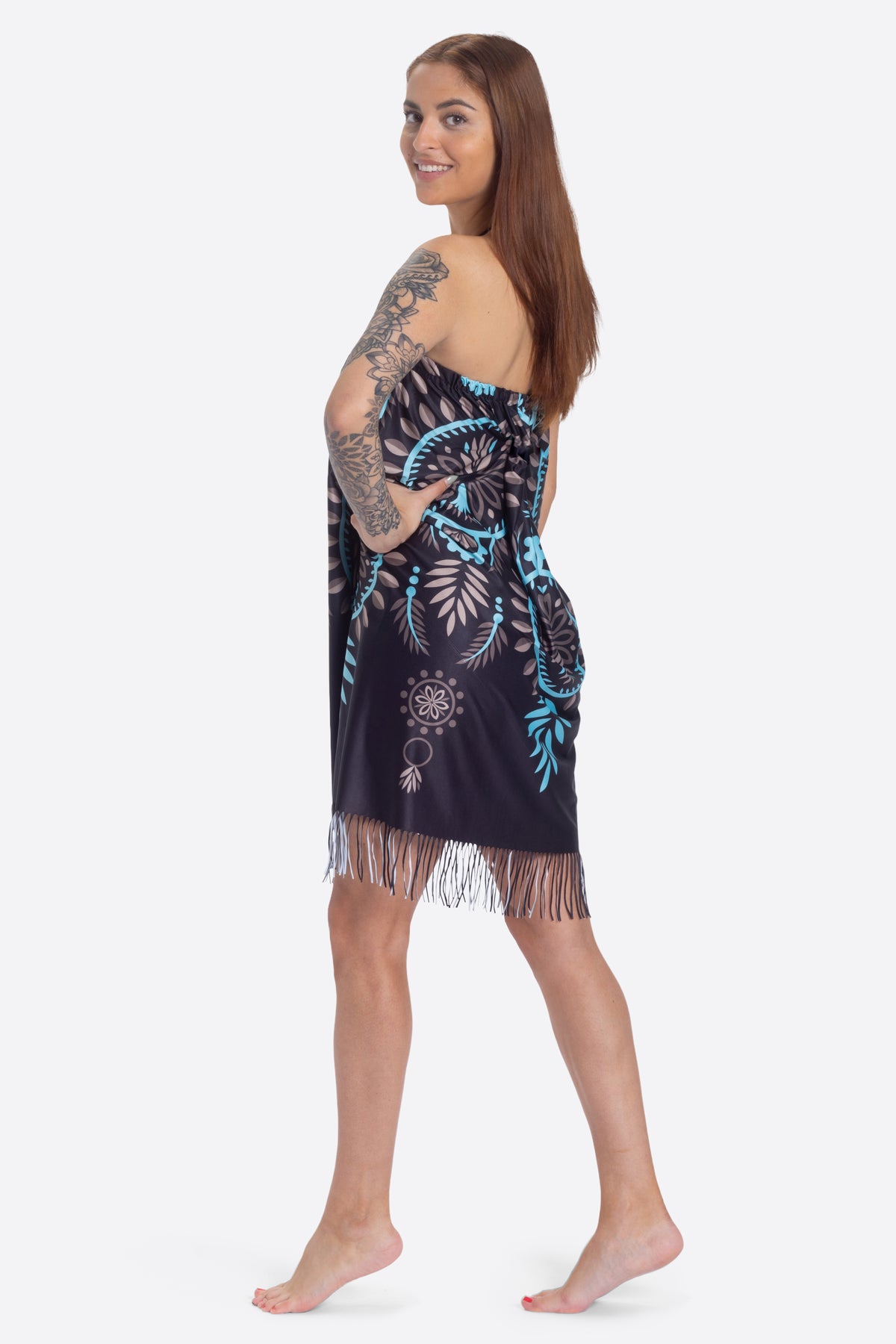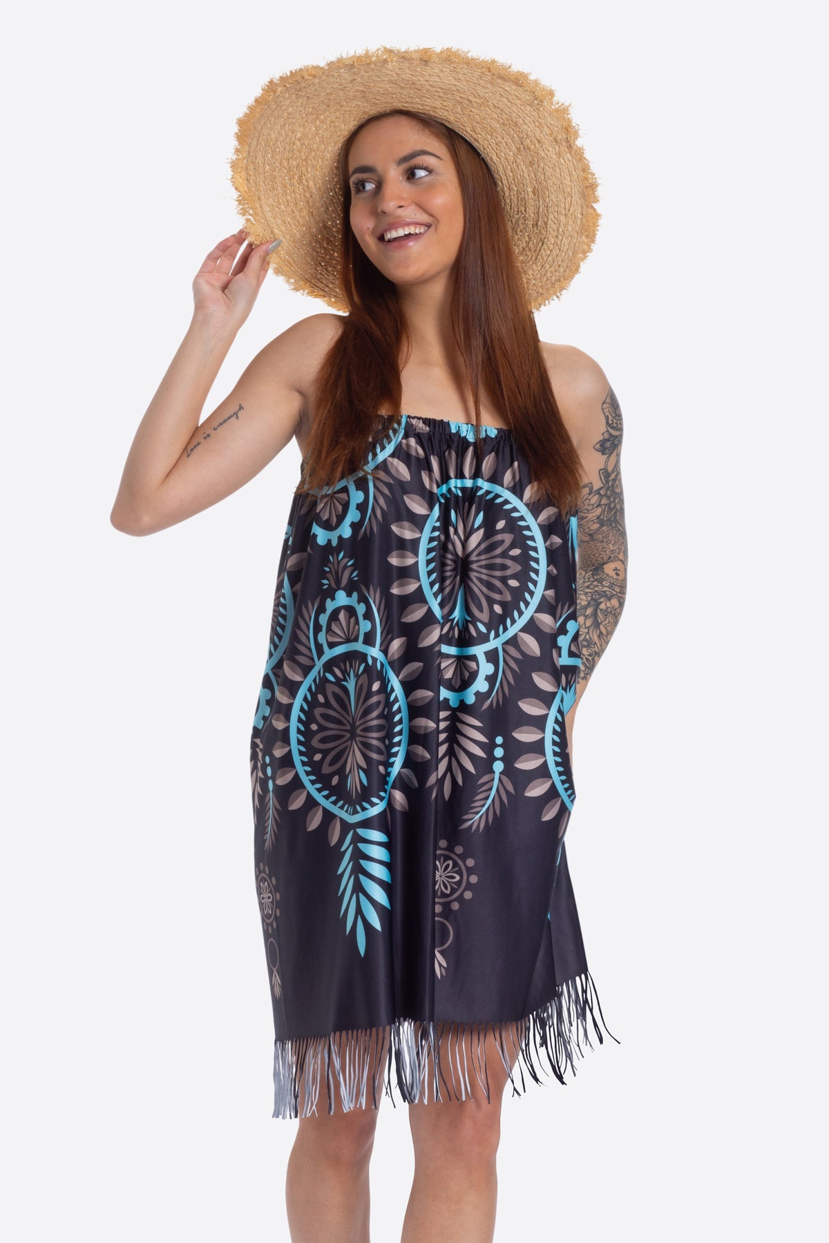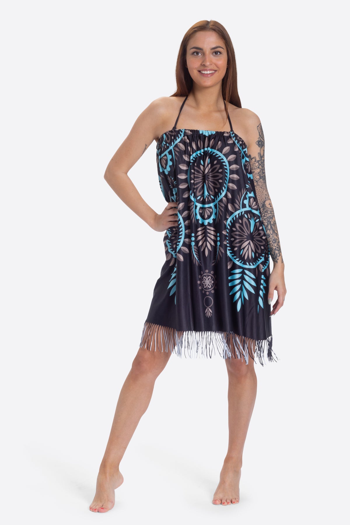Easy Peasy: DEIN Overdress Modisch umspielt der Overdress den Körper. Ein leichter Gummizug hält die Tunika über der Brust. Und weil der bei allen unterschiedlich ist, passen Trägerinnen die Gummiweite blitzschnell mit Knöpfen an. Schmal, athletisch, üppig, rund – alle fühlen sich wohl! Auch der Bikini ist unter dem fabelhaften Overdress Schnell gewechselt. Aparte Muster verwandeln die tragbare Strandumkleide in ein schickes Must-have, auf das du nicht mehr verzichten magst..